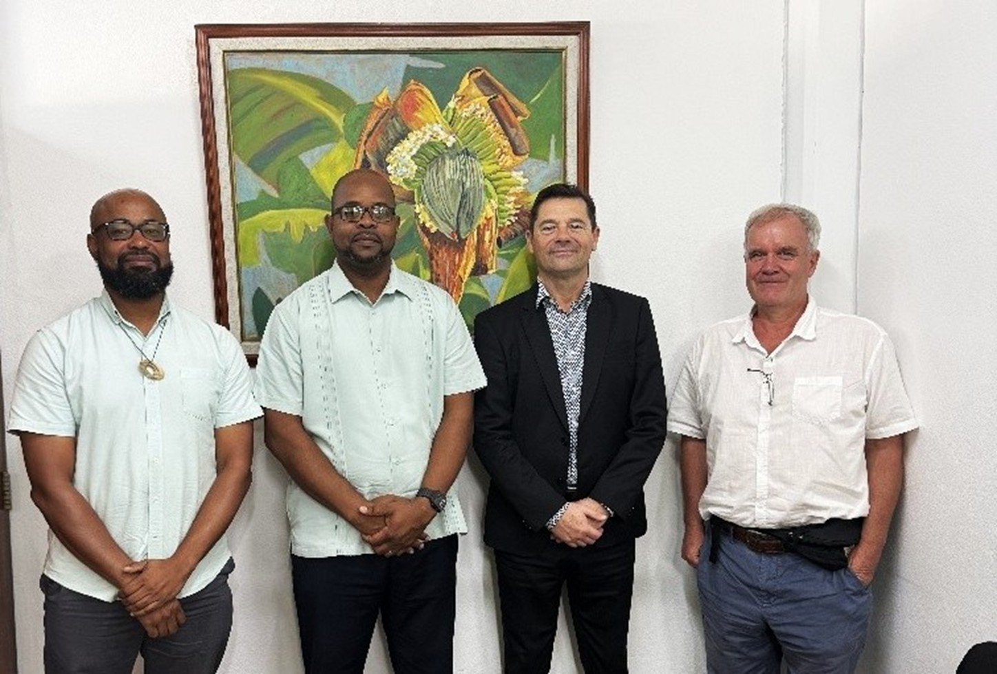 Above photo left to right: Mr. Anthony Cyrille, Country Specialist IICA Dominica; The Hon. Roland Royer, Minister for Agriculture, Fisheries, Blue and Green Economy; Mr. Lee Nelson, Manager New Zealand Latin America and the Caribbean: CSA programme; Dr. Julian Hill, Ternes Scientific, New Zealand.
